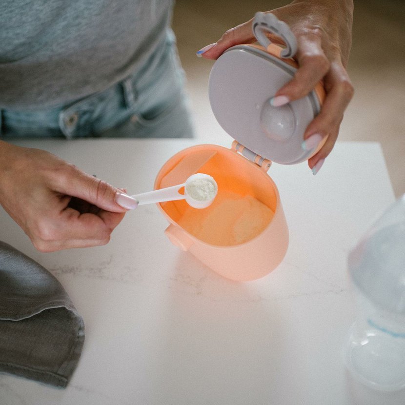 Přenosná nádoba na sušené mléko - ideální pro domácí použití a na cestách. Díky hermetickému uzávěru zůstane mléko vždy čerstvé a suché Sada obsahuje lžičku, která umožňuje odměřovat porce. Vestavěná příčka umožňuje přesný sběr mléka. Nádoba má pohodlnou silikonovou rukojeť pro přenášení. Lze jej využít i k uložení dalších malých svačin a pamlsků. Nádoba byla speciálně navržena pro skladování sušeného mléka. Díky němu budete mít vždy po ruce čerstvé a připravené sušené mléko. Díky silikonové rukojeti se snadno přenáší - ideální jak na cesty, tak na doma. Hermetické uzavření poskytuje ochranu proti vlhkosti. Sada obsahuje praktickou lžičku, která vám umožní přesně odměřit mléko. Lžíce je umístěna v samostatné přihrádce. Můžete v ní mít své oblíbené pamlsky a mít je vždy po ruce. Technická data