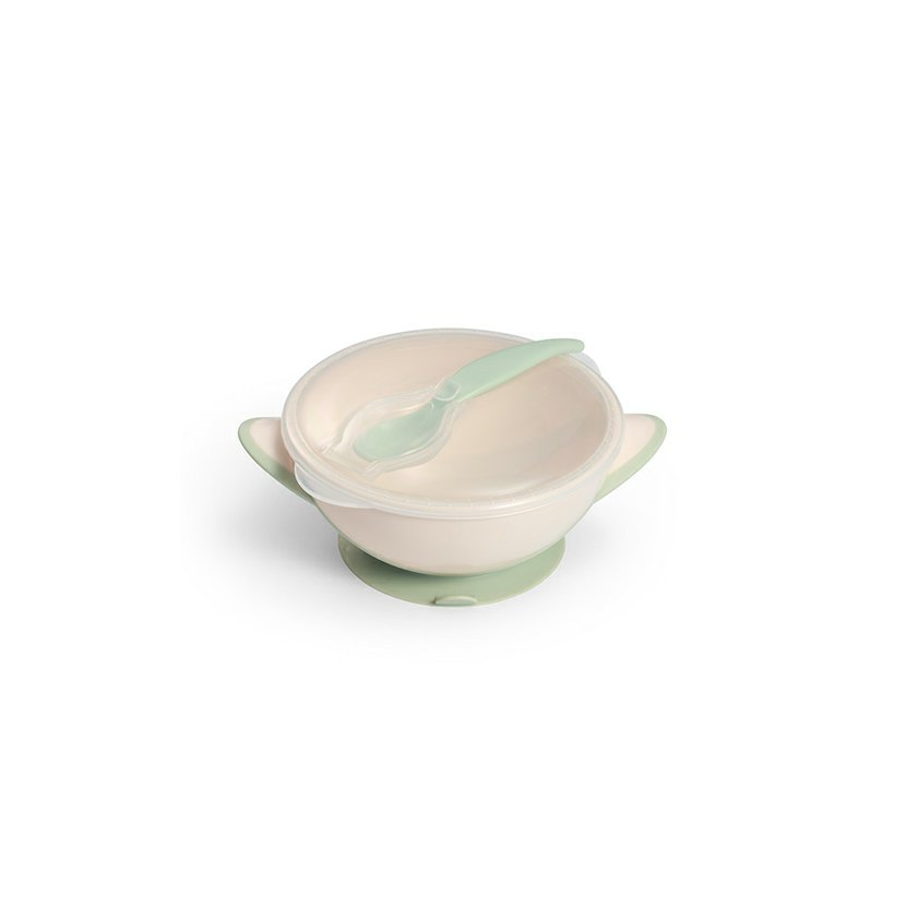 Miska s přísavkou a lžičkou babyono béžovo-zelená