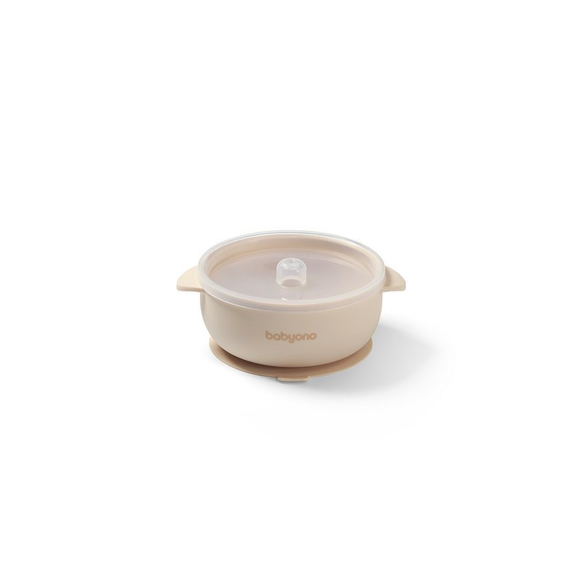 Silikonová miska s přísavkou a víčkem babyono béžová
