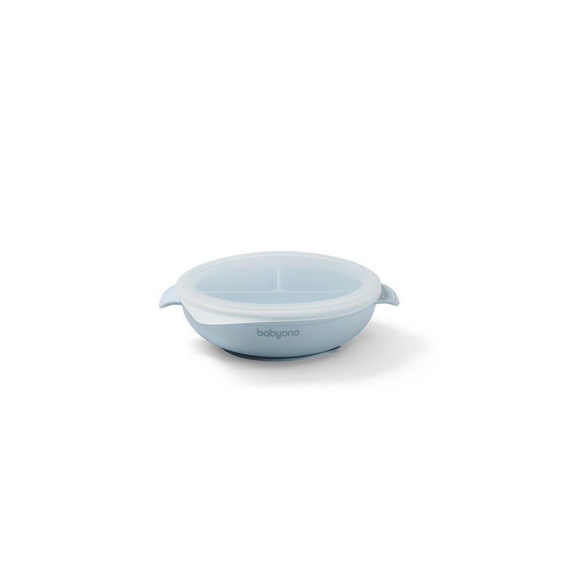 Silikonový talíř s přísavkou a víčkem babyono modré